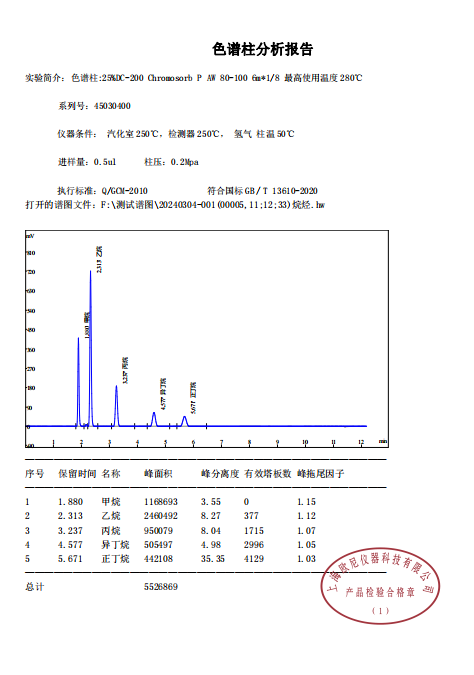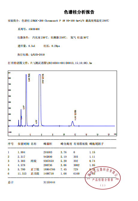25%DC-200 Chromosorb P AW 测天然气组成甲烷、乙烷、丙烷、丁烷、戊烷,符合国标GB/T 13610-2020