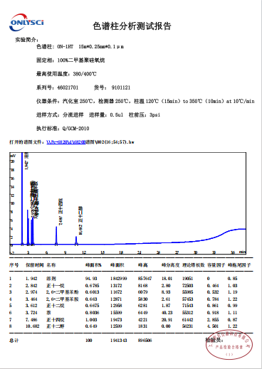 非极性固定液 最高使用温度380℃/400℃