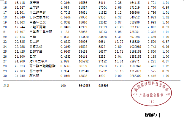 测甲醇、乙醇、丙酮、异丙醇、乙腈、乙酸甲酯、二氯甲烷、正丙醇、丁酮、乙酸乙酯、三氯甲烷、环己烷、异丁醇、苯、正庚烷、正丁醇、丙二醇甲醚、1,2-二氯丙烷、甲基环己烷、乙酸正丙酯、甲基异丁基甲酮、甲苯、乙二醇、四氯乙烯、乙酸丁酯、乙苯、对/间二甲苯、丙二醇甲醚醋酸酯、邻二甲苯、环己酮